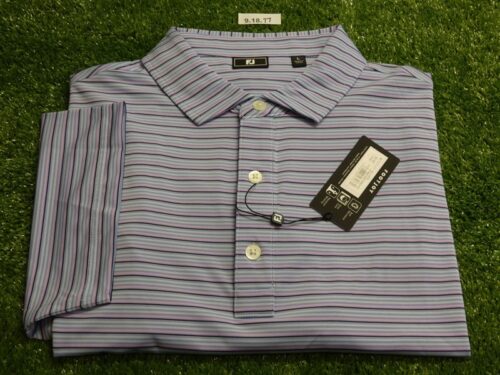 FootJoy Mens Multi-Stripe Lisle Polo Golf Shirt Perwinkle/Orchid/Ice Large 35143