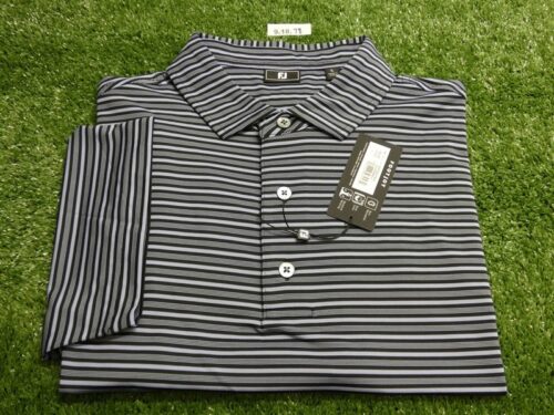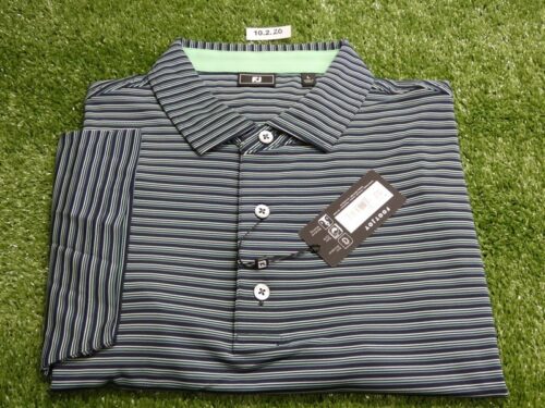 FootJoy Mens Shirting Stripe Lisle Polo Golf Shirt Black/Periwinkle Large 35129