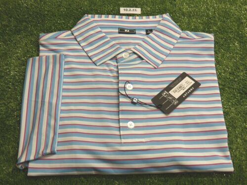 FootJoy Mens Tie Stripe Lisle Polo Golf Shirt Orchid/Ice/Periwinkle Large 35163
