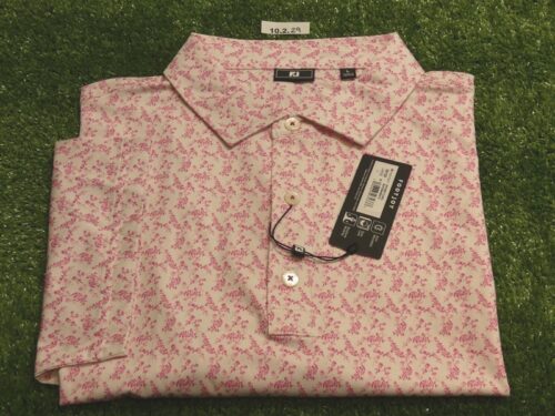 FootJoy Mens Vintage Floral Lisle Polo Golf Shirt White/Magenta Large 35123