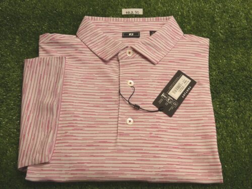 FootJoy Mens Modernist Geo Pique Polo Golf Shirt White/Magenta Large 35096