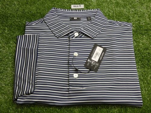 FootJoy Mens Shirting Stripe Lisle Polo Golf Shirt Navy/White Large 35128