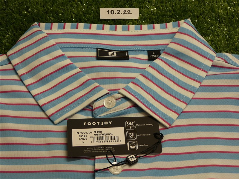 FootJoy Mens Tie Stripe Lisle Polo Golf Shirt Air Blue/White/Magenta Large 35161